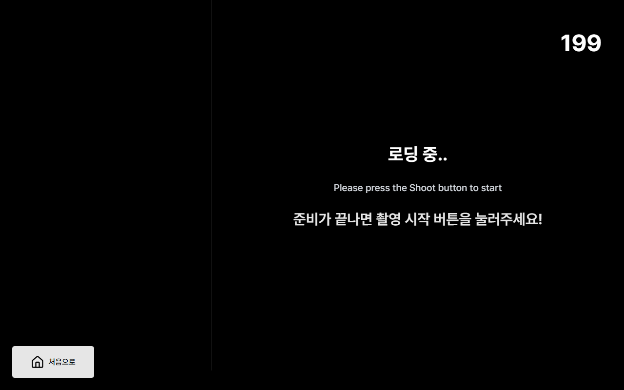 - 촬영 시작: 준비가 되면 촬영시작 버튼을 누릅니다. 촬영 페이지(